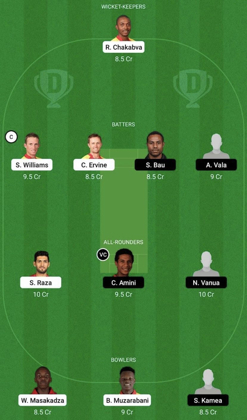 Fantasy Suggestion #2: Regis Chakabva, Sean Williams, Craig Ervine, Sese Bau, Assad Vala, Sikandar Raza, Charles Amini, Norman Vanua, Wellington Masakadza, Blessing Muzarabani and Semo Kamea.