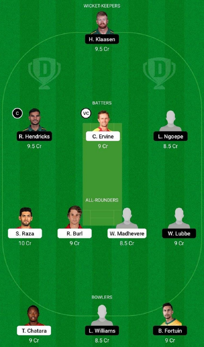 Fantasy Suggestion #1: H Klaasen, R Hendricks, C Ervine, L Ngoepe, S Raza, R Burl, W Madhevere, W Lubbe, T Chatara, L Williams and B Fortuin.