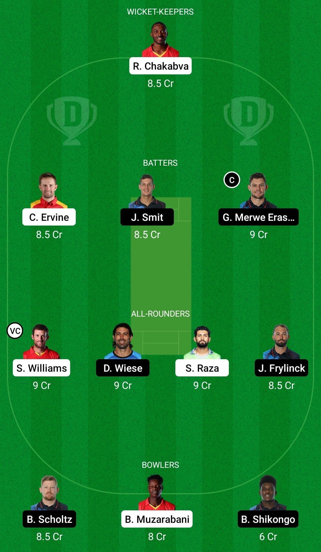 Both teams boast some high-quality all-rounders and hence, at least three or four of them need to be picked. Moreover, all-rounders like David Wiese, Sikandar Raza, Sean Williams and Gerhard Erasmus will also be top captaincy picks.