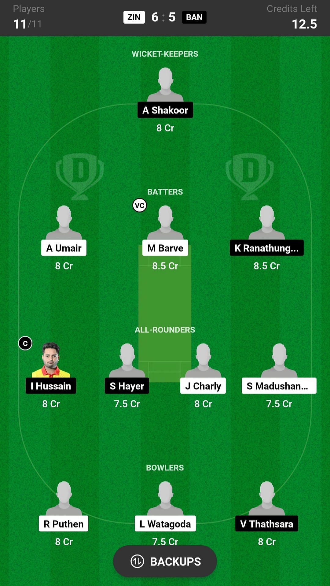 Ahead of this exciting match, here's all you need to know about the ZIN vs BAN Dream11 Prediction, today's playing XIs, fantasy cricket tips, best player picks, and the pitch report.