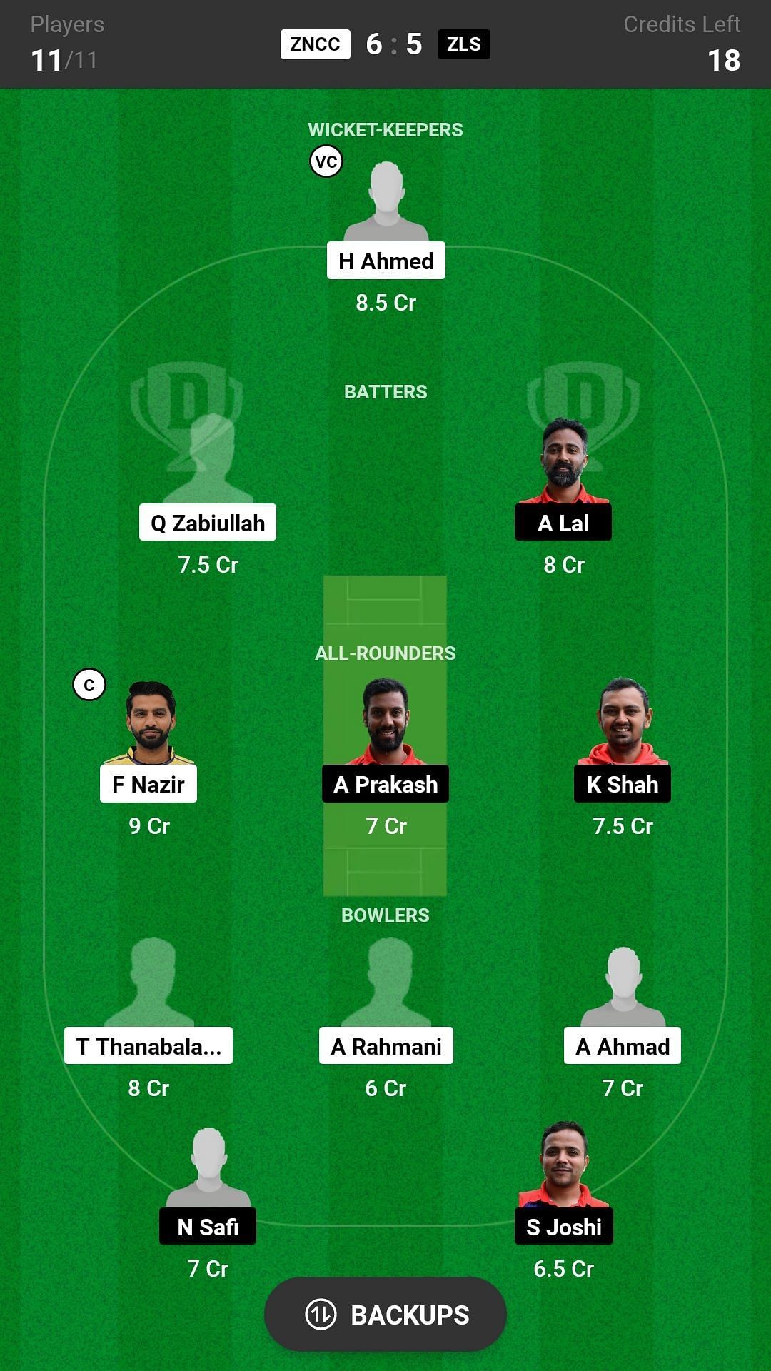 A Lal and Q Zabiullah are the two best batter picks for the Dream11 team. A Wadhwa played exceptionally well in the last series so he is also a good pick for today's Dream11 fantasy team.