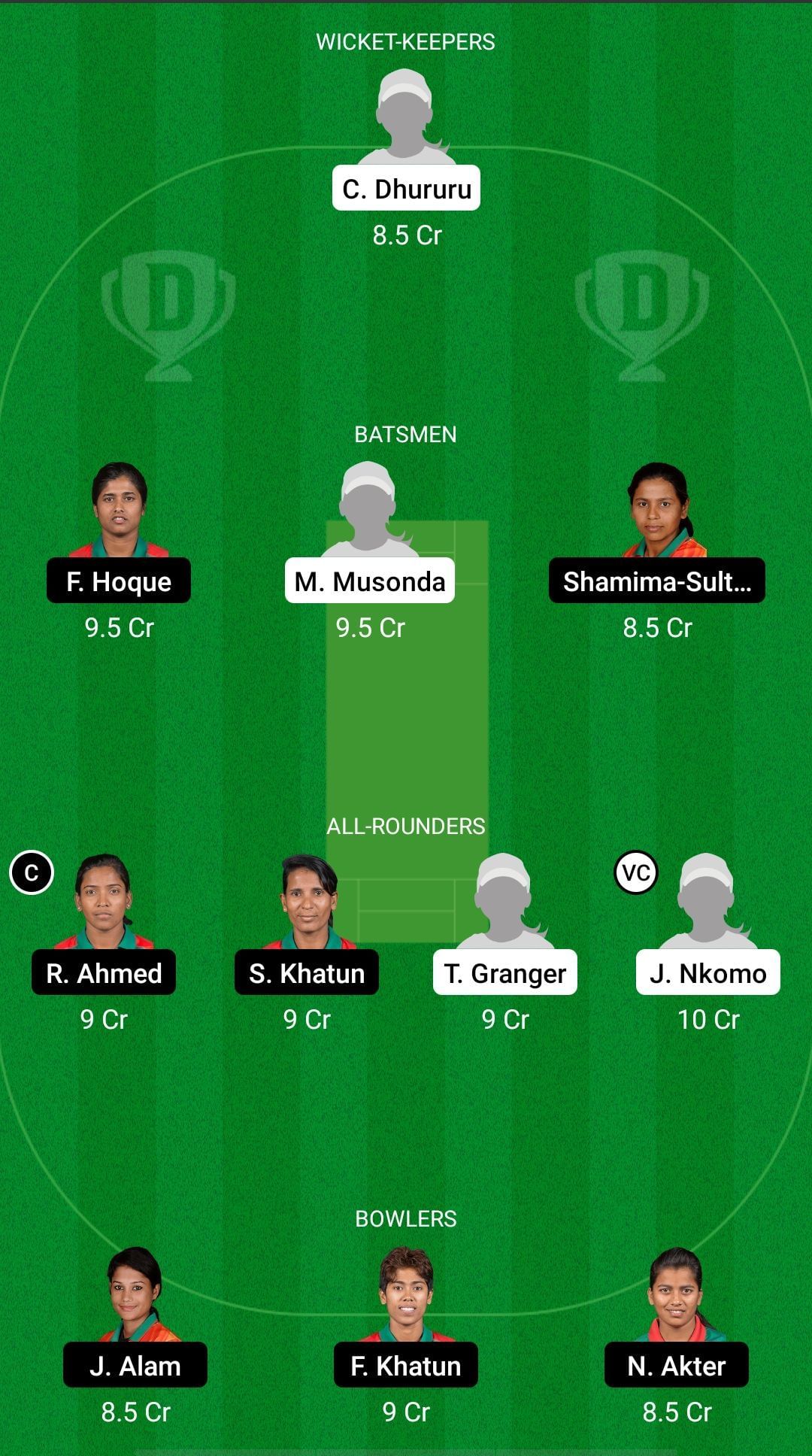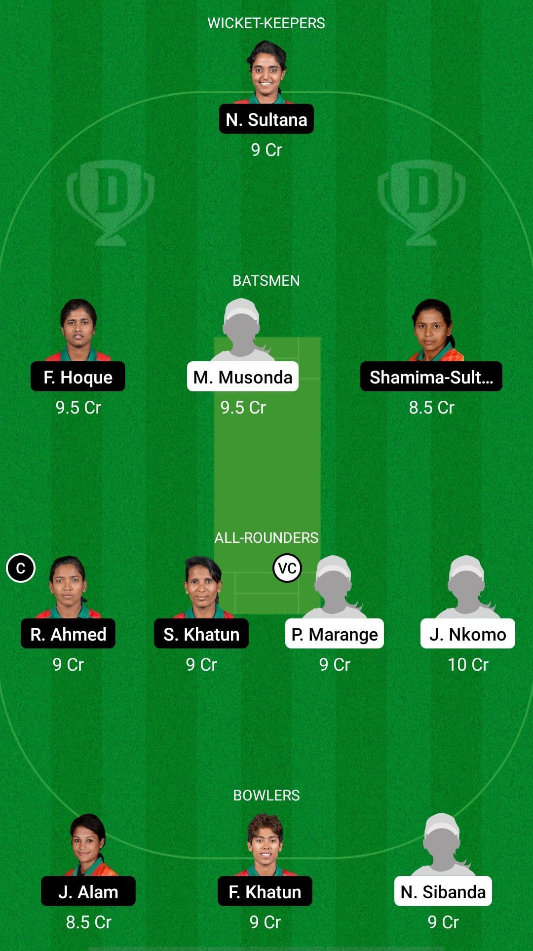 Fantasy Suggestion #1: Nigar Sultana, Fargana Hoque, Mary-Anne Musonda, Shamima-Sultana, Rumana Ahmed, Salma Khatun, Precious Marange, Josephine Nkomo, Jahanara Alam, Fahima Khatun, Nomvelo Sibanda.
