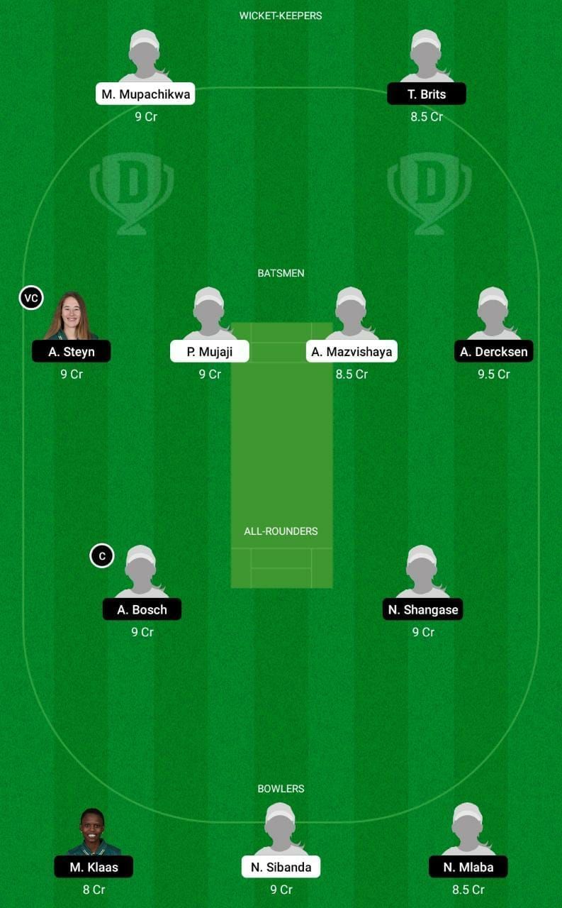 Fantasy Suggestion #1: M Mupachikwa, T Brits, A Steyn, A Dercksen, A Mazvishaya, P Mujaji, A Bosch, N Shangase, M Klaas, N Sibanda and N Mlaba