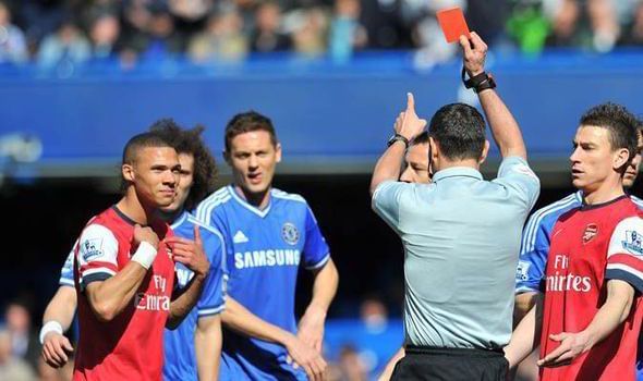 Arsenal’s 2014 defeat at the hands of Chelsea was embarrassing enough – the game finished 6-0 to the Blues – but one of the most bizarre red cards of all time only made matters worse. This strange incident saw defender Kieran Gibbs sent off for literally doing nothing wrong at all.