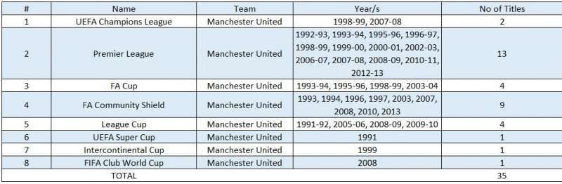 The Manchester United legend was the most decorated club footballer for a long while, having won an unprecedented 35 trophies during his long and illustrious first-team career.