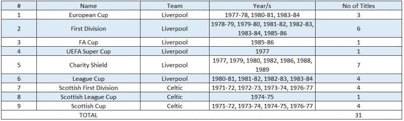 #4 Kenny Dalglish (Celtic and Liverpool) – 31