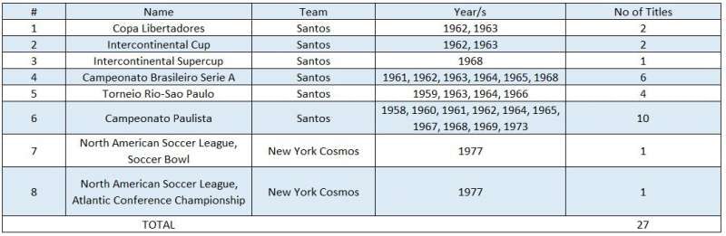 The 3-time world cup winner won an incredible 25 trophies with his beloved club Santos, where he spent 18 seasons and capped off his career with another two trophies at New York Cosmos.