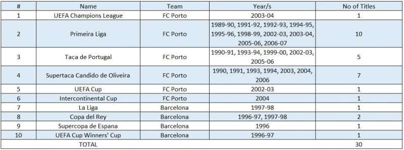 The Portuguese international spent most of his career with Porto barring a two-year spell with Barcelona. Baia won 25 trophies with the Dragons while adding another 5 during his stint with the Catalan giants.