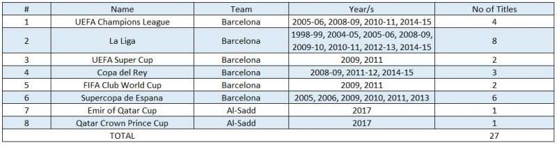 During his career, which spanned over 19 years, the 37-year-old has won 27 trophies, 25 of which came with his beloved club – Barcelona.