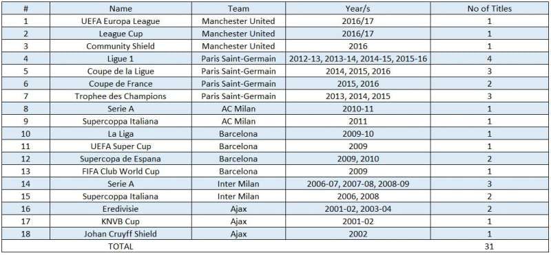 During his stints with Ajax, Juventus, Inter Milan, Barcelona, AC Milan, Paris Saint-Germain and Manchester United, the Swede won 33 titles in total. However, due to the Old Lady’s involvement in the Calciopoli scandal, the Turin outfit were stripped off their two Scudetti and hence Ibrahimovic’s final tally remains at 31.