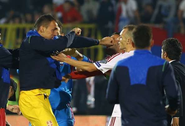 Within seconds, the defender was confronted by two Albanian players who attempted to retrieve the flag; chairs and other projectiles were thrown towards the players as members of each team’s support staff flooded the field, which further escalated the matter. The match was eventually called off and stadium security was criticised heavily after supporters managed to enter the field and chase after players.