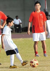 Out of the 15 players who are supposed to get their scholarships, Uzair was the first one to get it. The Madanpura resident was more than excited to play against his hero and was even more thrilled when he managed to dribble past Bhutia in one occasion.