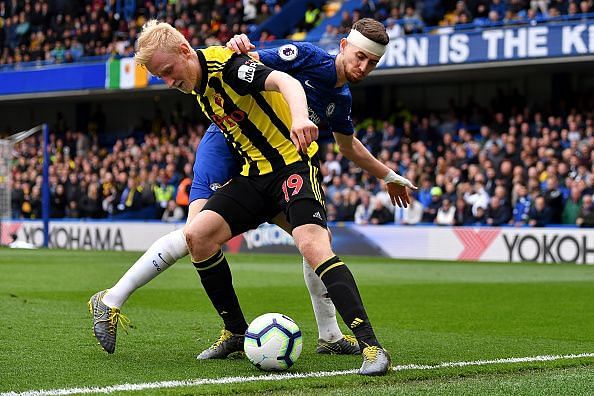 Ruben Loftus-Cheek, much to the delight of the home fans, came on for Kante. As the half went on, Andreas Christensen and David Luiz were bruised and battered dealing with the veteran striker Troy Deeney.