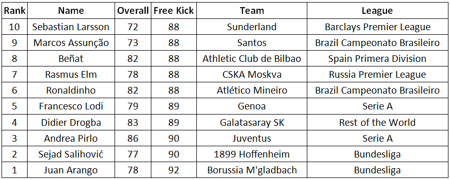 EA Sports have released the rating of the top 20 free kick takers on FIFA 14 ahead of the game’s release on 24th September 2013.