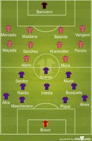 Barcelona (4-3-3): Bravo; Alves, Pique, Mascherano, Alba; Rakitic, Busquets, Iniesta; Munir, Sandro, Suarez.