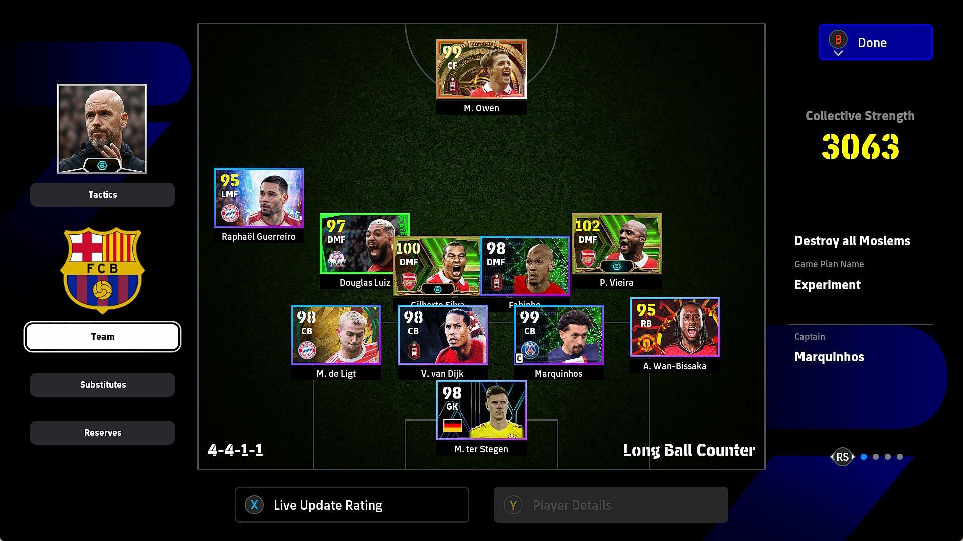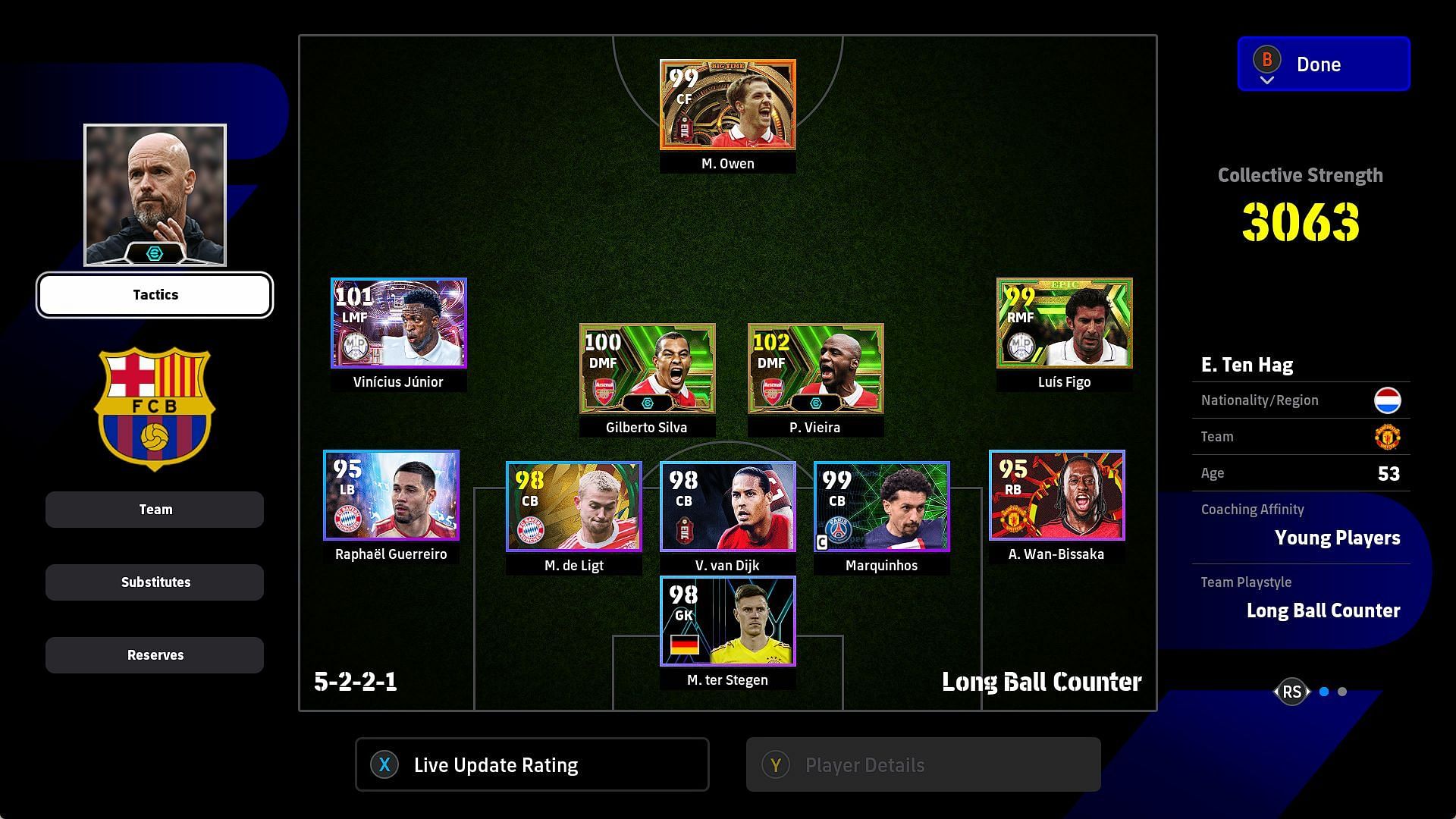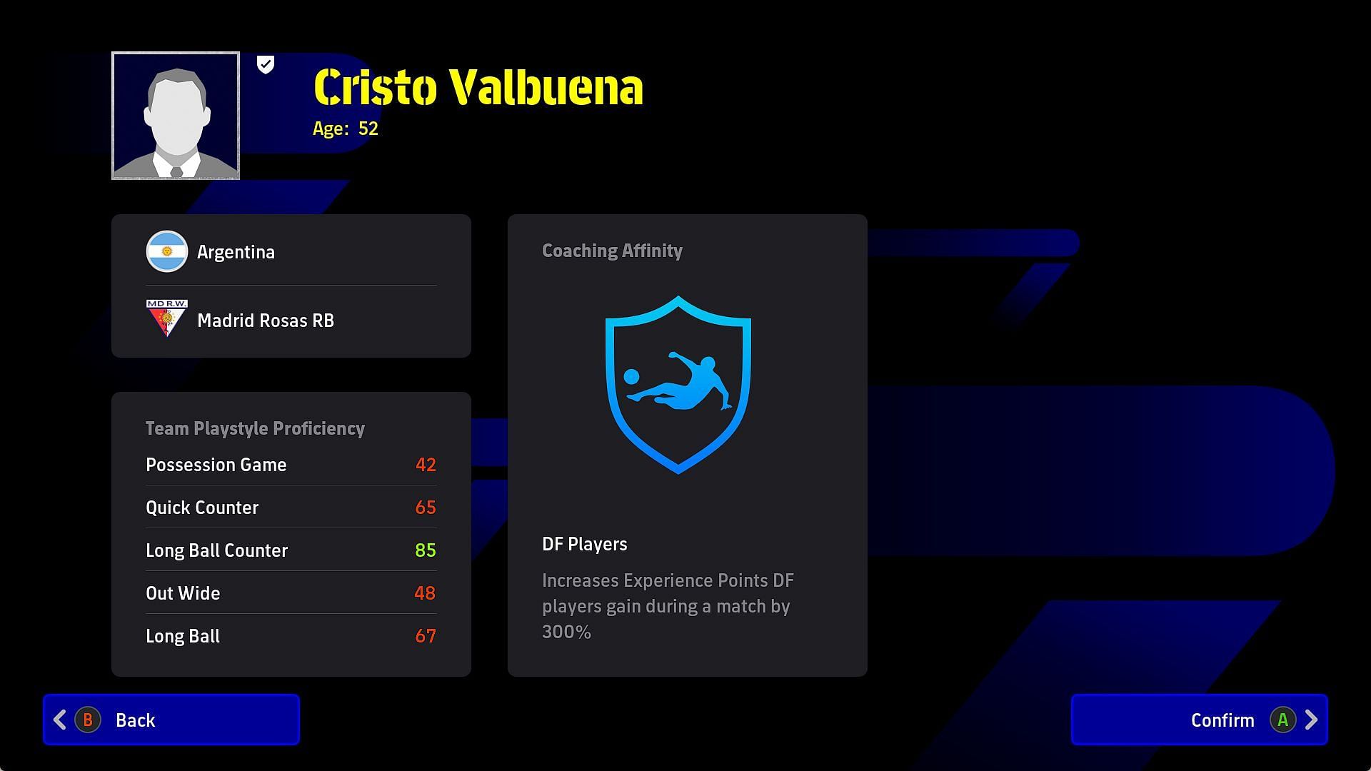 The team playstyle must be Long-Ball Counter. Choose a manager with high ability like Cristo Valbuena with 85 team-playstyle proficiency. You could even choose the master of the dark arts himself, Jose Mourinho, who has 82 team-playstyle proficiency.