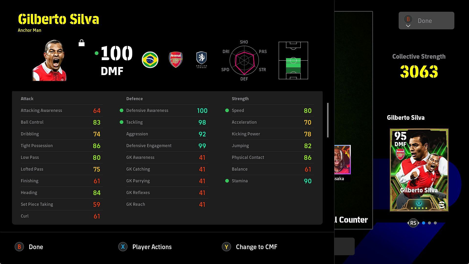 In the graphics here, you can see Gilberto Silva and Fabinho are the two ‘Anchor Man’ midfielders, meaning they stay behind and focus on their defensive duties.