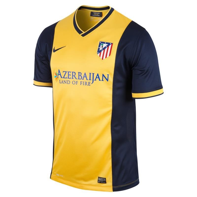 Atletico Madrid have been colouring up an otherwise two- team dominated league with their beautiful football and in 2014, they visit their opponents in kits worthy of their play. The Club’s new yellow and blue kit away kit is different from recent designs. The front and back of the shirt is yellow while the sides are blue. The shorts are blue and the stockings are yellow