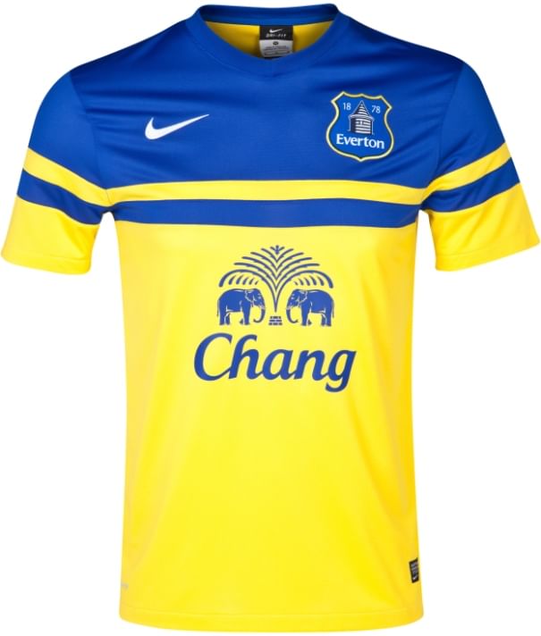 Everton have been experimenting with their alternate strips in the past few years but this time, Nike seems to have got it just right with their latest away shirt. Trying on bold new colours, Nike has done a perfect balance of blue and yellow, making it quite eye-catching. It has a classic v-neck design and shoulders and chest are blue, while the rest is yellow. The shorts are blue again and stockings are yellow.
