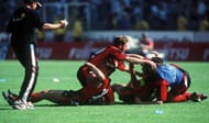 Oliver Kahn was up in a flash joining the battle against the Hamburg defence, who desperately clung on to their slim lead. However, it was Patrik Andersson who cemented his place as a Bayern Munich legend with his first and only goal for the club. The Swedish defender made no mistake and drilled the ball straight into the net.