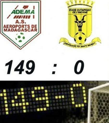 Every football fan loves a high scoring game as it makes the game much more exciting and captivating. The game between Malagasy clubs AS Adema and SO l'Emyrne on 31st October 2002 saw a total of 149 goals being scored; however, all these were own-goals scored by SOE to protest refereeing decisions in the previous match that saw them lose the league title.