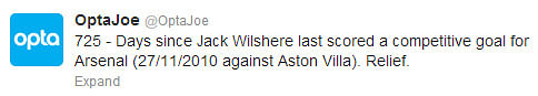 Jack Wilshere made his second start to a Champions League match since returning his long injury lay-off , putting in a solid performance topping it up with a goal in almost two years. He was at his unswerving best, bringing the ball out of midfield, engaging in terrific link up play. One does get the impression if the 20-year-old was the missing piece in Arsenal’s jigsaw puzzle in search of a trophy. The prospect of a better understanding between the midfield trio of Wilshere, Cazorla and Arteta is mouth watering, really.