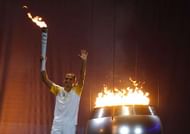 4) Legendary marathon runner Vanderlei Cordeiro de Lima lights the Olympic cauldron before his home-crowd