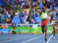 21) Etenesh Diro of Ethiopia finishes the heats of Women's 3000m Steeplechase in one shoe