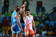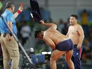 39) Uzbekistan’s Bekzod Abdurakhmonov upsets firm favourite Jordan Burroughs in the 2nd round of Repechage in Men’s 74kg wrestling