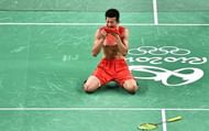 35) China’s Chen Long breaks into tears on winning the gold medal point in Men’s singles badminton