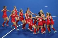 30) Olympic’s first same-sex couple Kate and Helen Richardson-Walsh celebrate with Great Britain teammates after winning gold in Women’s Hockey
