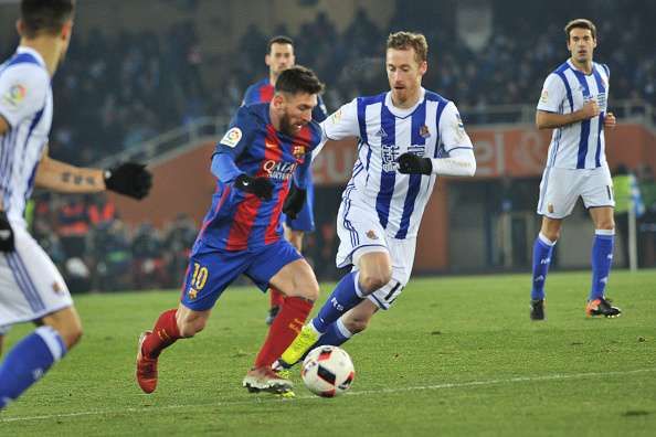 Luis Enrique has never won a match against La Real at the San Sebastian, and it looked like he would not win another when ex-Arsenal striker Carlos Vela put the Basque side ahead. Messi equalised in the 55th minute to level the score at one a piece.