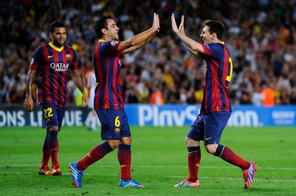 This was Lionel Messi's first hat-trick outside the Nou Camp in this competition. Lionel Messi surpassed the record of 71 Champions League he jointly held with former Real Madrid striker Raul Gonzalves when he put Barca 2-0 ahead in the first half. The game also marked Luis Suarez's first goal in Barca colours.