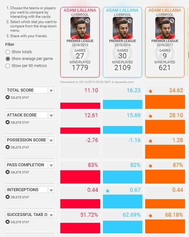 It is just 9 games into the season but Lallana’s scores confirm the improvement and underscore his impact.