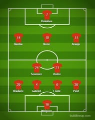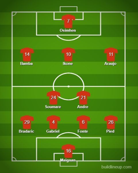 Lille (4-2-3-1): Maignan; Bradaric, Gabriel, Fonte, Pied; Andre, Soumare; Bamba, Ikone, Araujo; Osimhen