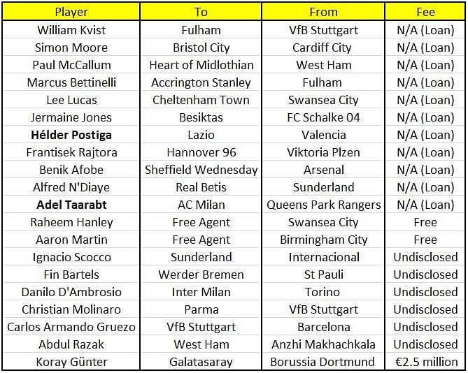 Here is the list of all the major transfer signings from yesterday: