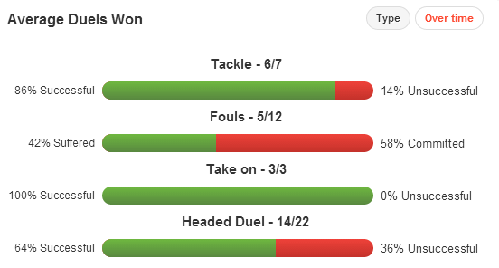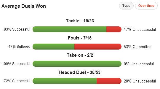 Instead of bringing in Astori over the summer, Pochettino opted for Dejan Lovren. The Croatian international has shown his worth, and his aerial ability has been shown to be better than the potential arrival at Saint Mary’s Stadium this season. Astori has won 70% of his headed duels, or 14/20, whereas Lovren has been successful in 73% of battles – or 33/45.
