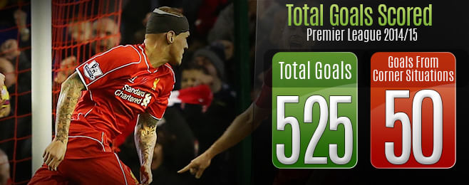 Of the 525 goals scored in the Premier League this season, 50 have come from corner situations, either directly or when a cross into the box has been knocked on - an example of this was Ryan Shawcross’ goal in Stoke’s 1-1 draw with Manchester United at the turn of the year, which was assisted by Peter Crouch. With 1 goal scored every 37.5 corners, though, the benefits of a corner kick seem to have dropped in the Premier League this term.9.5% of the total goals scored in the league this campaign have come via a corner, with this return the lowest in England's top tier in the last 6 seasons.