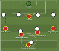 The forwards aim to press the centre-backs and not allowing them a easy pass into the midfielders. Nowadays in the world of single-striker formations, forwards usually take a place between the centrebacks, attempting to stop any passing between the center-backs. The attacking midfielder and the deep lying playmaker in turn push up and cut off passing lanes to midfielders.