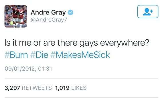Andre Gray’s behavior has been universally condemned by his current club, Burnley, the football community, social media users at large and LGBT communities.
