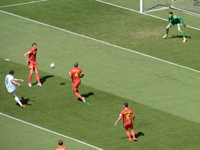 Argentina were good on the counters. Messi dropped deep to try and pressurize the Belgian attackers and win the ball, which he did successfully a few times. Having won the ball in deep areas, he used his pace, power and dribbling skills to run at the defense and create chances. On one such occassion, he slipped through an inch perfect pass to Di Maria, who shifted on to his left to shoot, but his shot was blocked by Kompany. Another chance was made by Higuain who ran at the defense, nutmegged Kompany and finally hit the bar. These were probably the only real chances Argentina created apart from the goal.