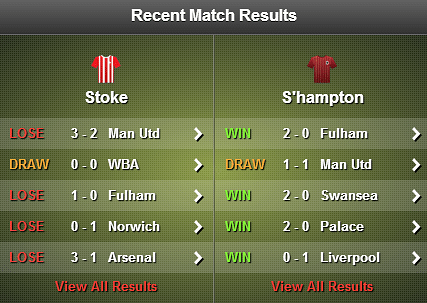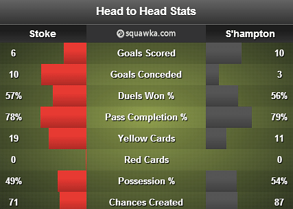 Coincidentally, Southampton’s last defeat came on the same day as Stoke’s last win, as they’ve won four and drawn two of their last six, conceding just the one goal (to Manchester United) on the way to a place in the top five.