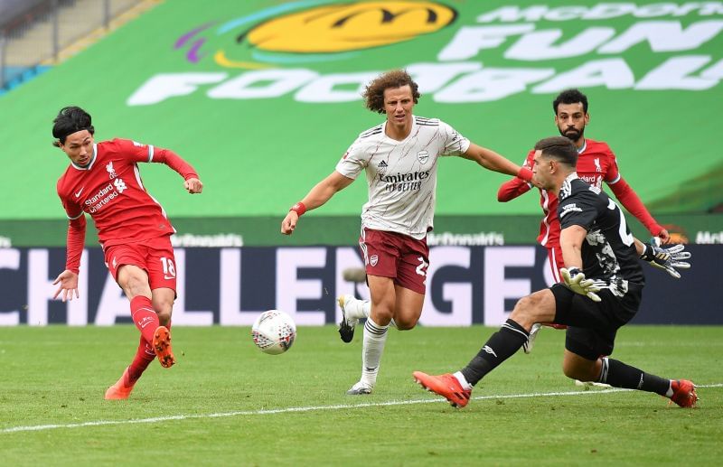 Pierre-Emerick Aubameyang opened the scoring for Arsenal with a lovely strike early in the game. A Bukayo Saka pass found Aubameyang in space on the left flank, and he cut in to curl an unstoppable shot past Alisson Becker in the Liverpool game.
