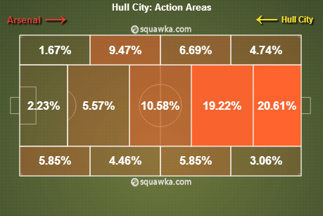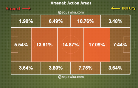 On the other hand, Hull City played most of the match in their own half defending their goal. Özil swiftly changed his positions during the match trying to provide support to Nacho Monreal, who was moving forward through left side of the pitch.