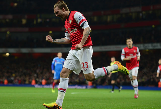 Arsenal: Szcz?sny (GK), Mertesacker (C), Koscielny, Monreal, Jenkinson, Rosicky, Özil, Ramsey, Cazorla, Flamini, Bendtner