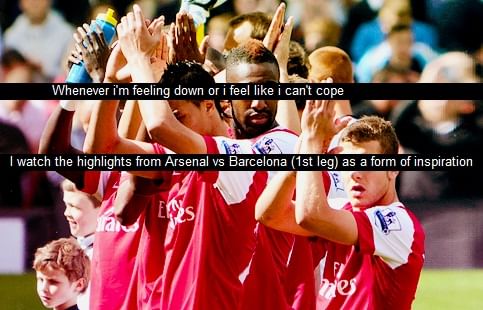 If you’re an Arsenal supporter and you’ve still not watched the 2-1 Barcelona victory, you’re missing out. Image credit: http://arsenalconfessions.tumblr.com/