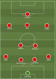 4-2-3-1: Szczesny, Sagna, Mertesacker, Koscielny, Gibbs, Flamini, Wilshere, Cazorla, Gnabry, Ozil, Giroud
