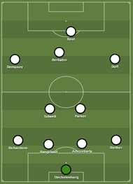 4-2-3-1: Stekelenburg, Riether, Hangeland, Amorebieta, Richardson, Sidwell, Parker, Duff, Dempsey, Berbatov, Bent