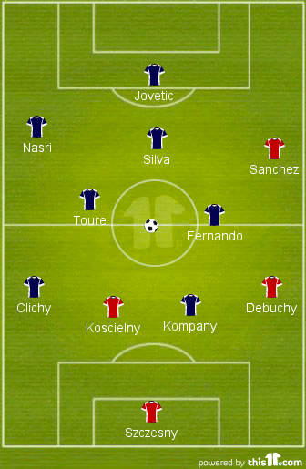 Midfield: Alexis Sanchez – Yaya Toure – Fernando – Samir Nasri