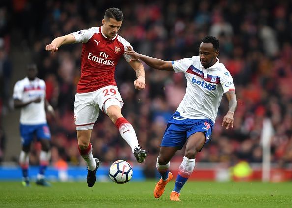 Coming into the game as a substitute, Xhaka gave the team more fluidity. He was involved in a heated argument with a Stoke City player as things became sour after Arsenal scored their third goal.